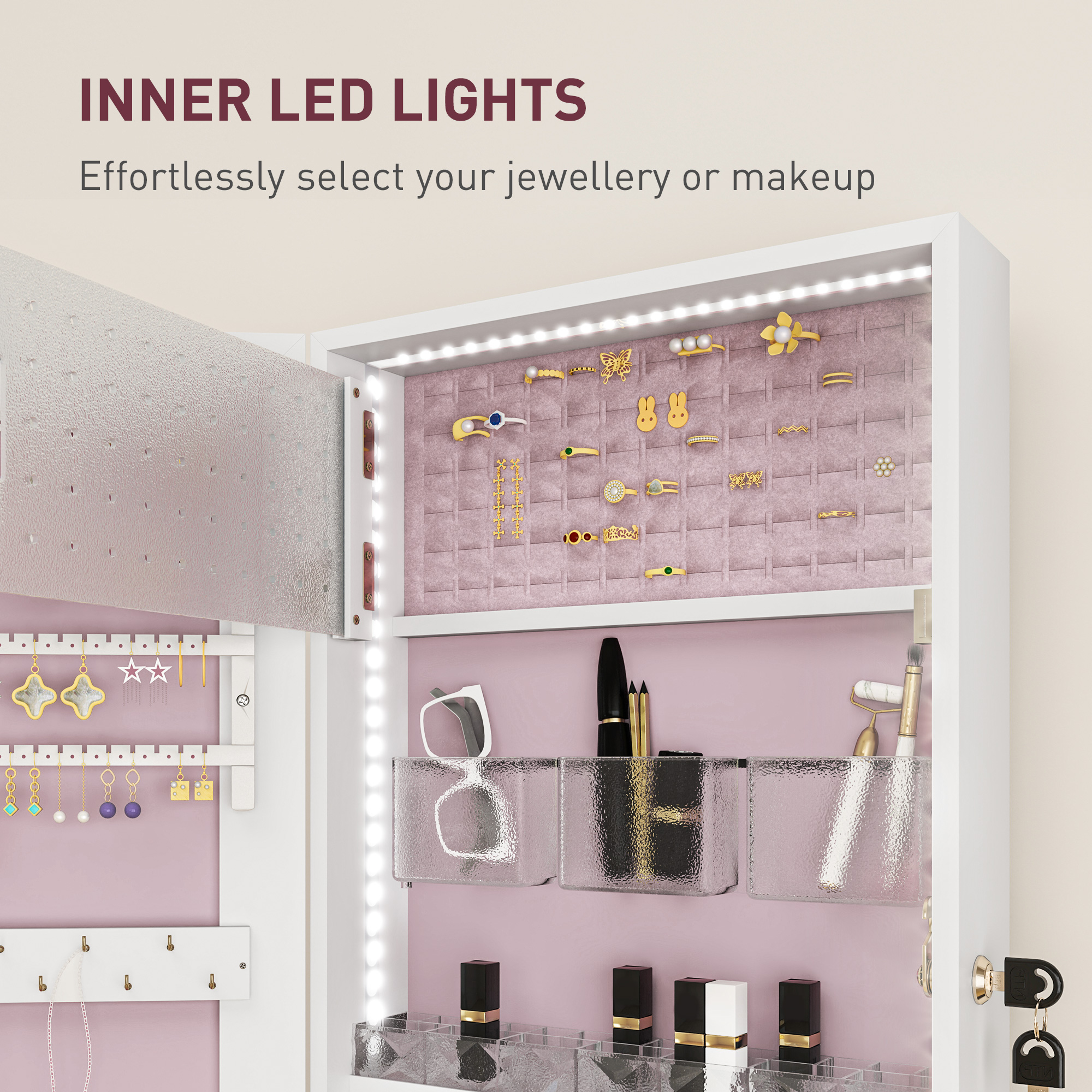 Something for every bedroom - this HOMCOM jewellery storage mirror. Keep all your jewellery, make-up and perfume together with the 80x earrings slots, 90x stud holes, 24x necklace hooks, 78x ring slots, three bracelet rods, lipstick/make-up tool boxes, storage bags, shelves and drawers. All is secured and protected with the lockable magnetic door. Complete with a front full body mirror to see yourself fully before leaving the house.