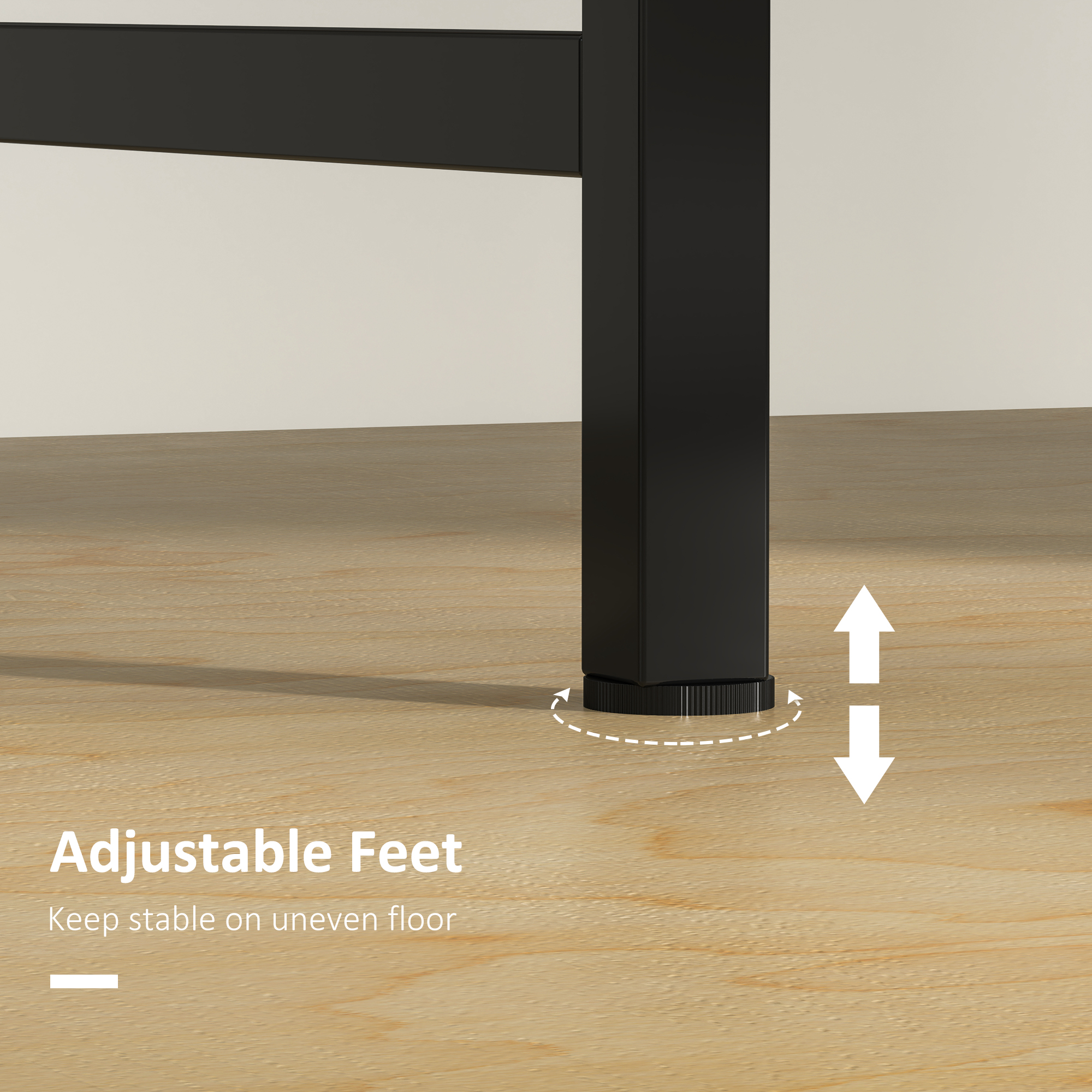Create the great setup for working from home with this two-tier work desk from HOMCOM. It uses a metal frame for a tough and strong structure, with thick particle board shelves for a solid and flat surface to work from. Both shelves are covered with melamine, so they are smooth and are protected against lighting marks and damage. The bottom shelf features a back panel, which allows safe storage and out of sight. This office table can make your work enjoyable.