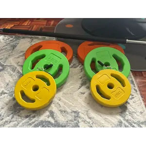 With this HOMCOM 20kg barbell weight set, your weightlifting journey starts here. It comes with three different weights - 5kg, 2.5kg and 1.5kg - so you pick a weight that's comfortable for you to lift. The bar is strong and rigid, with non-slip handles for a firm grip when exercising. The bench press bar and weights set also comes end fixings to keep the weights securely on the bar - they won't fall off at any point.