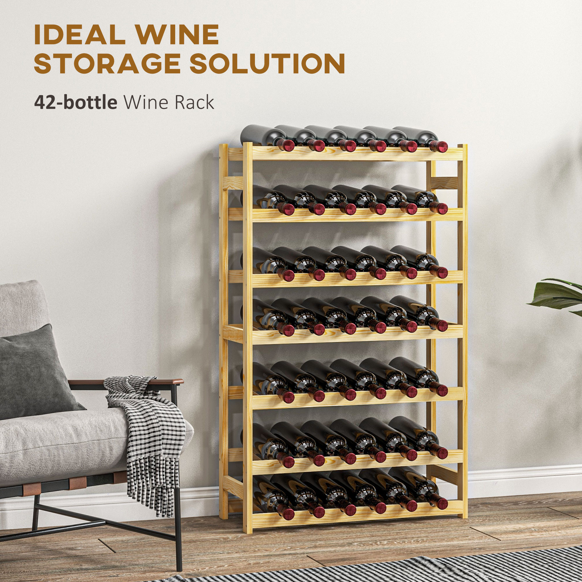 - Holds up to 42 bottles in total