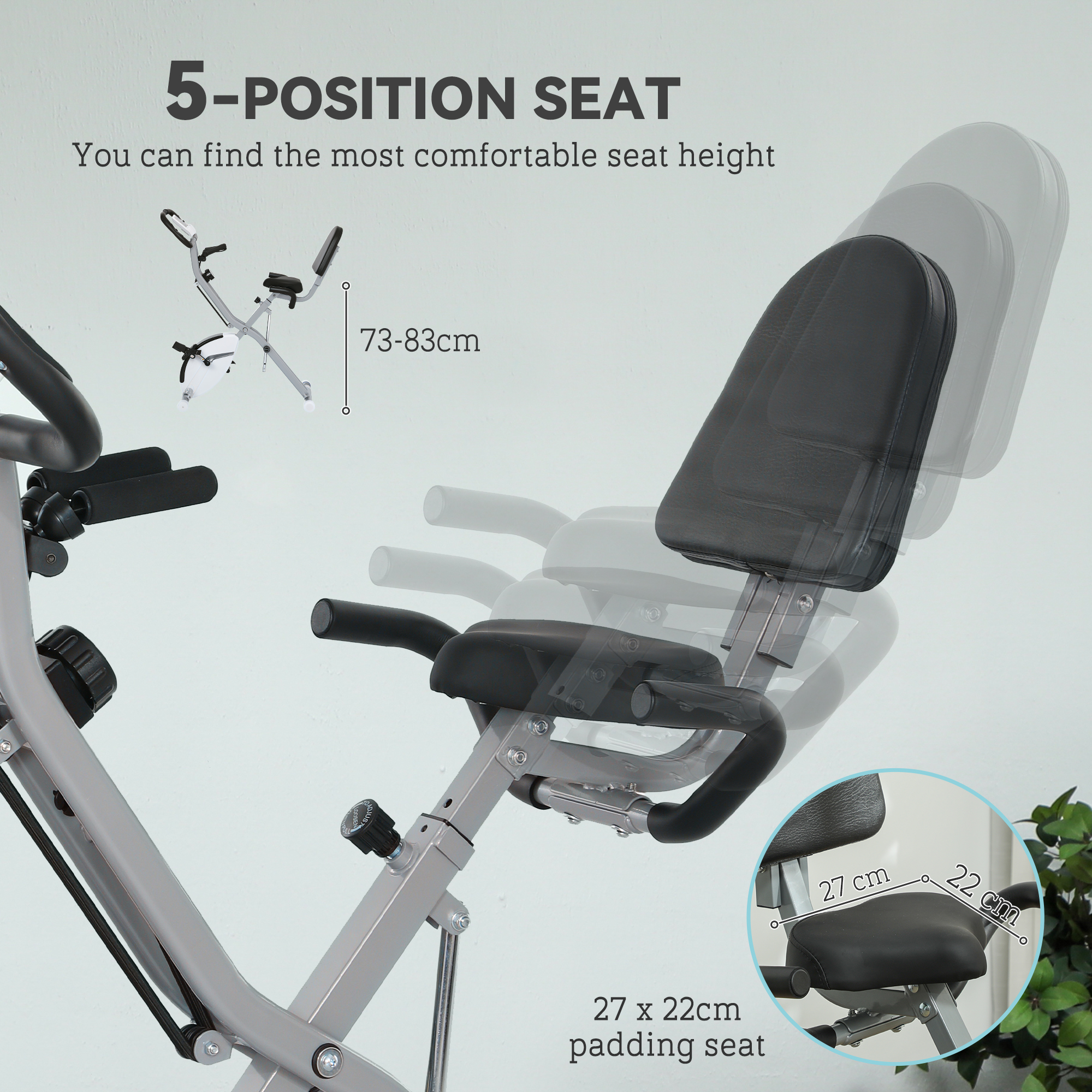 Transform your fitness routine with the SPORTNOW foldable bike! Choose from five riding positions, including recumbent and upright, to customise your workout. With 8-level adjustable magnetic resistance, enjoy a smooth, silent cycle every time. Plus, it's a breeze to store and move around, thanks to its compact, fold-away design. Ready to pedal your way to health?