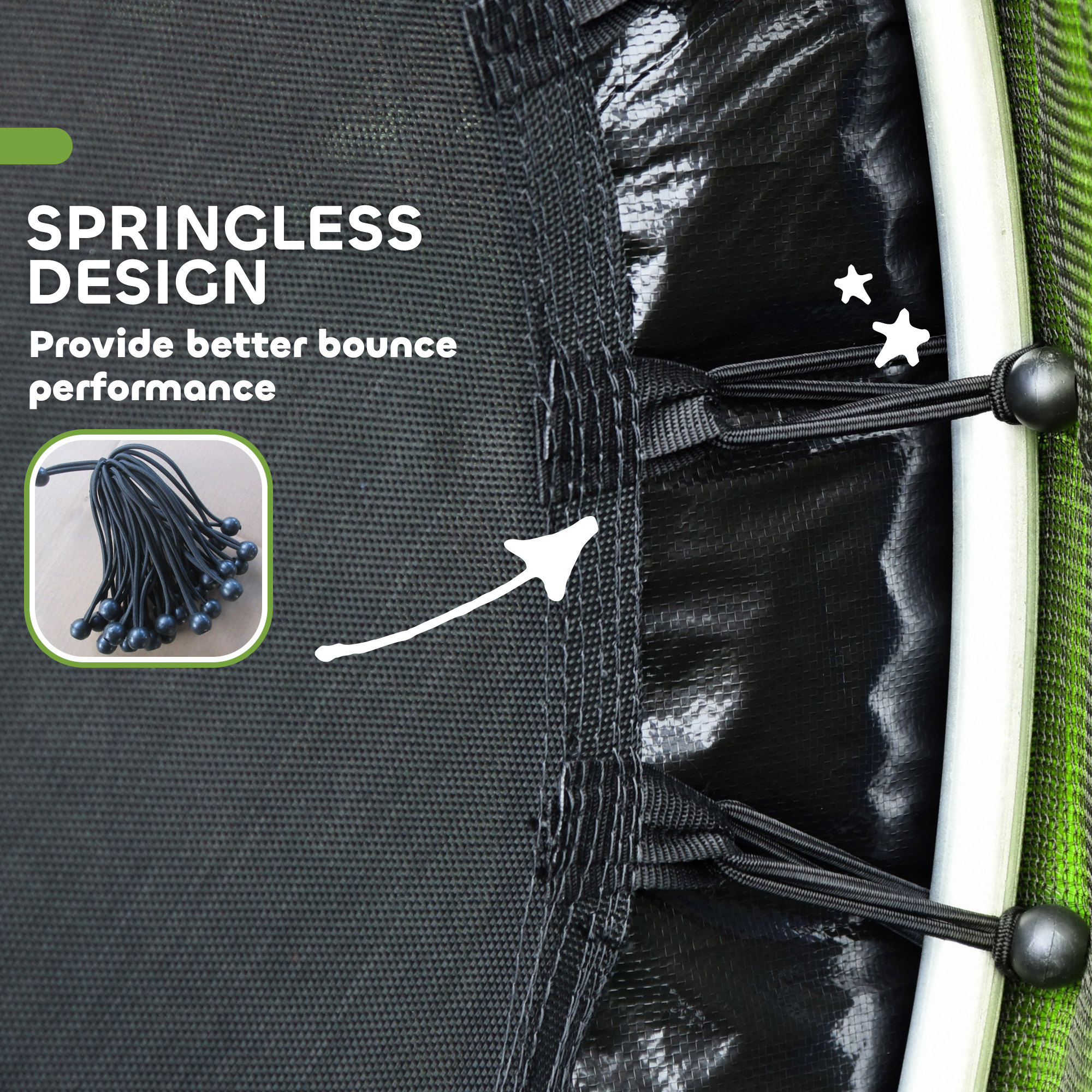 - A non-spring bungee with high elasticity, which is much safe for kids than metal springs