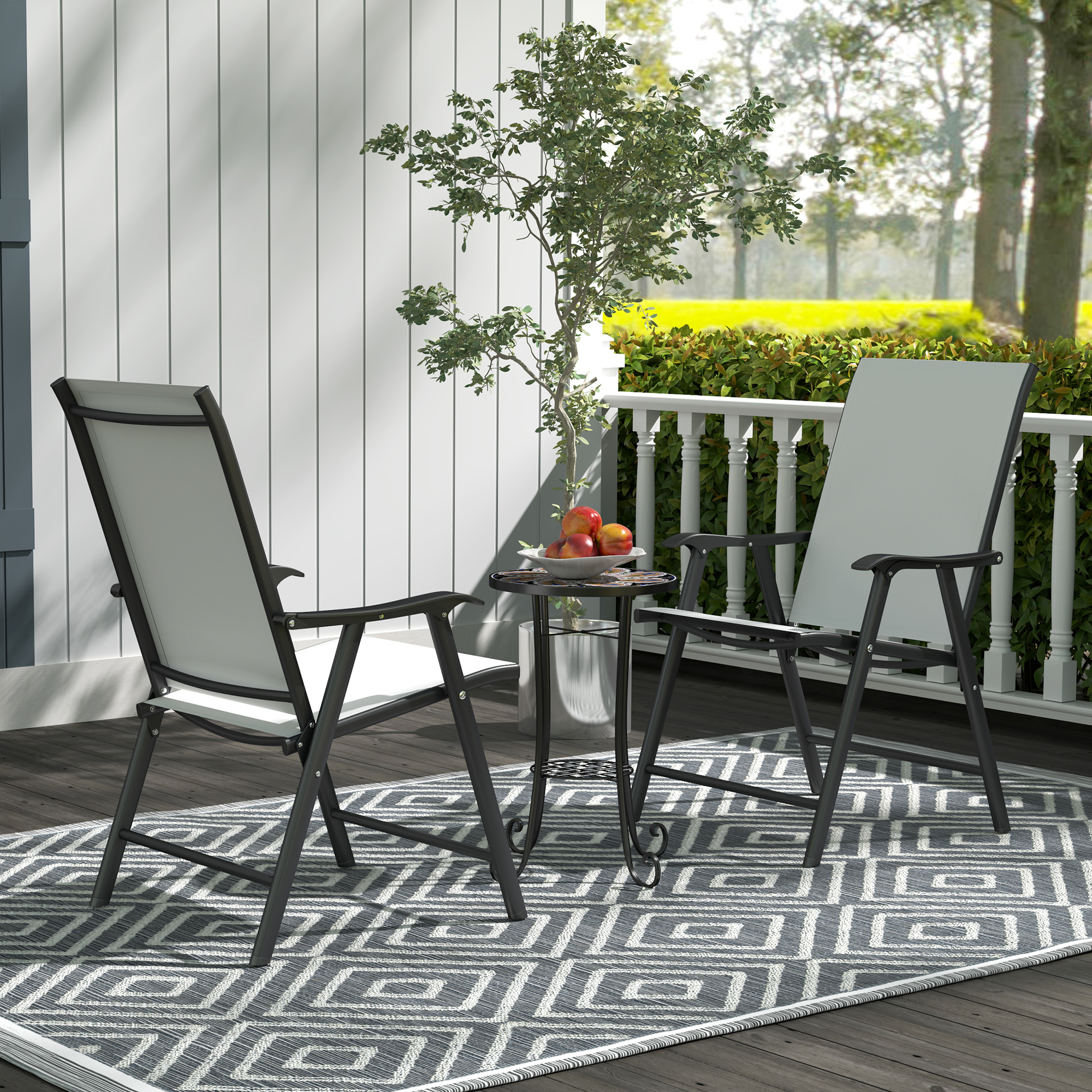 Add a splash of colour to your outdoor space with the Outsunny round garden table. This charming and striking patio table features a vibrant mosaic top and gracefully curved legs. With electrophoretic metal frames, this outdoor side table is strong to resistant water, weather and rust, complete with four legs for plenty of balance. It's not only a fetching small side table or bistro table but also includes a handy lower shelf for displaying plants or decorations.