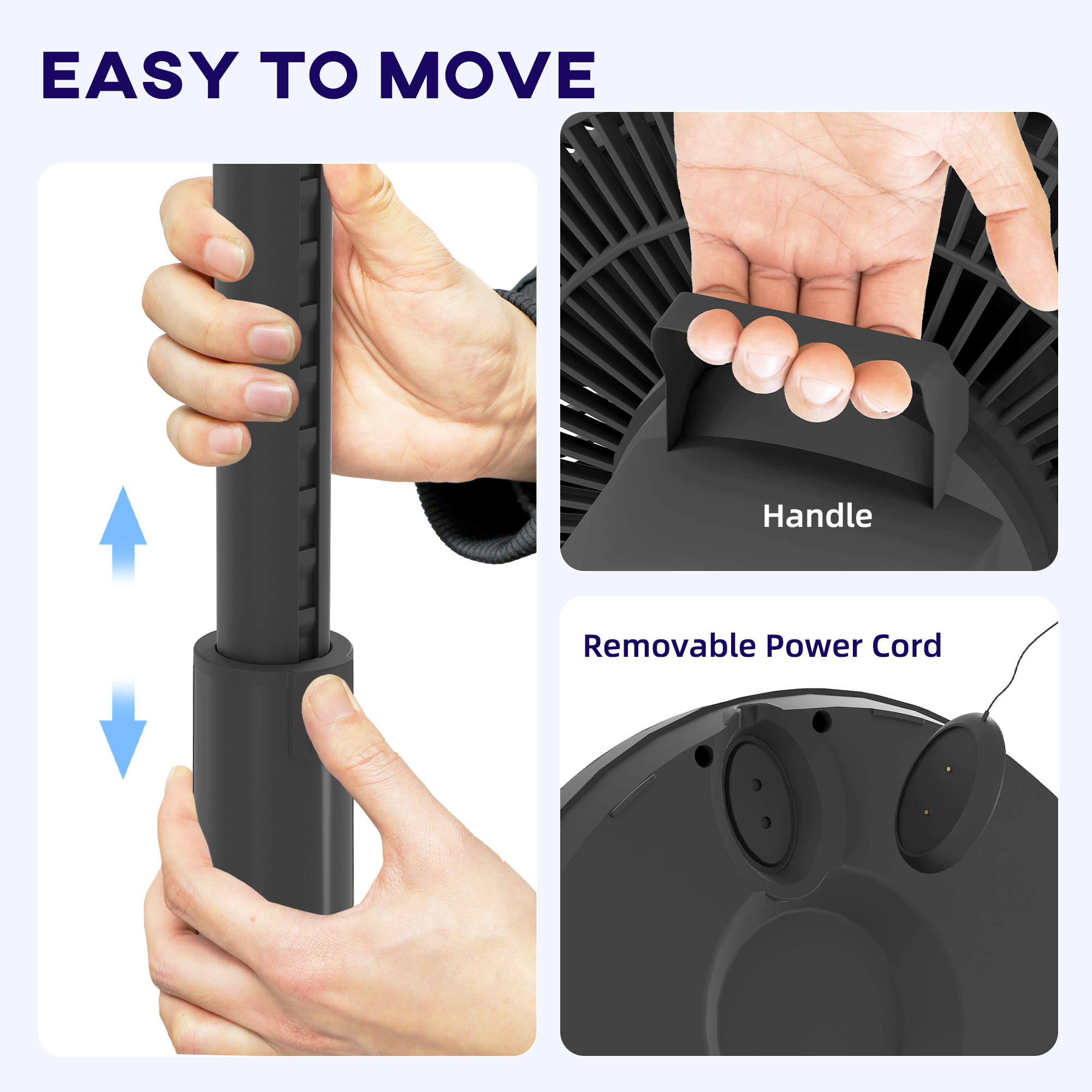 - Integrated handle and removable power cord design allow for easy relocation