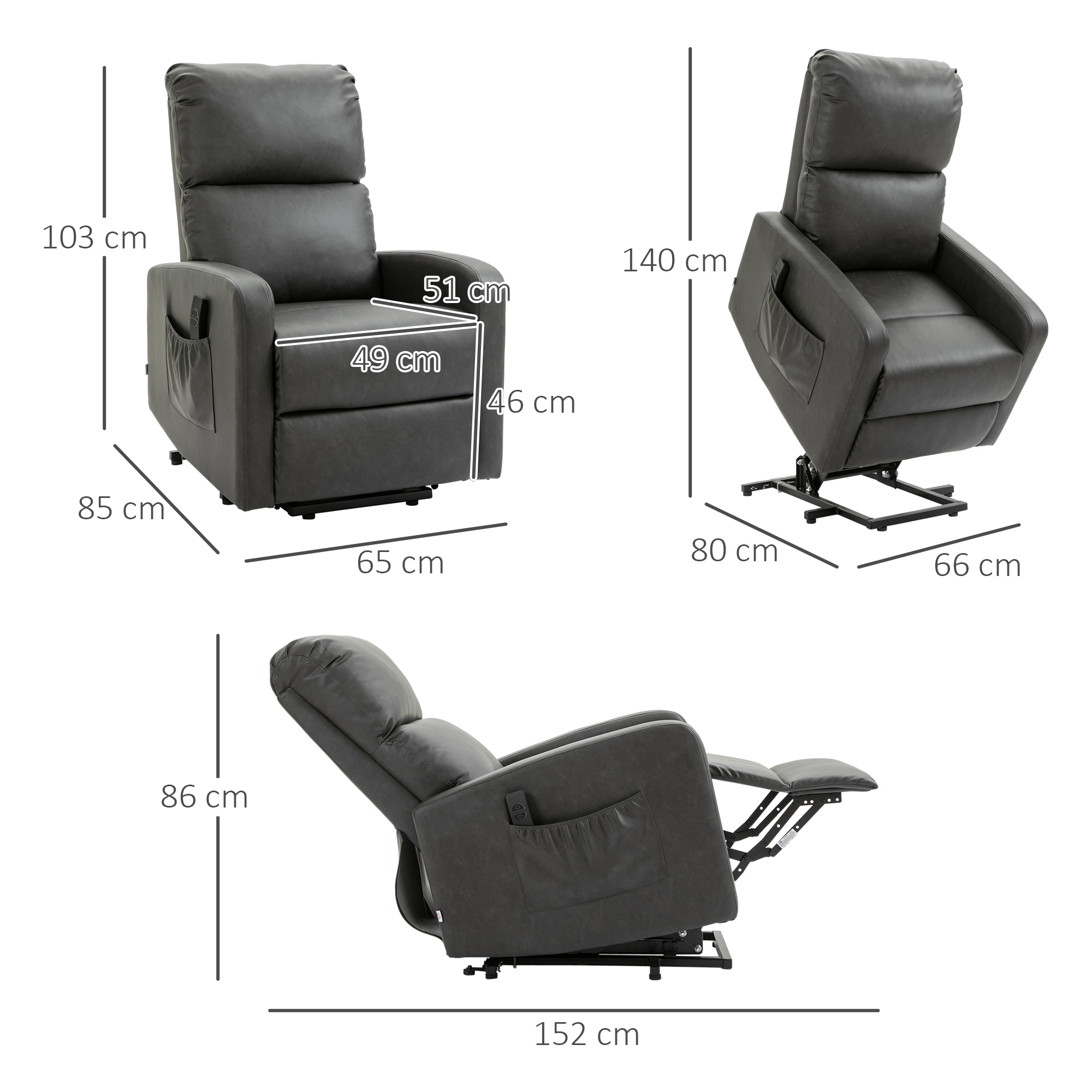 Make your life easier with this electric reclining chair from HOMCOM. If you or your family are suffering from mobility issues, the rise and recliner chair will be your practical choice. With the touch of a button, you can go from a seating position to a reclined position, or almost a standing position without effort. Generously padded upholstery delivers exceptional comfort and relaxation. The heavy-duty base gives it a robust and solid foundation.