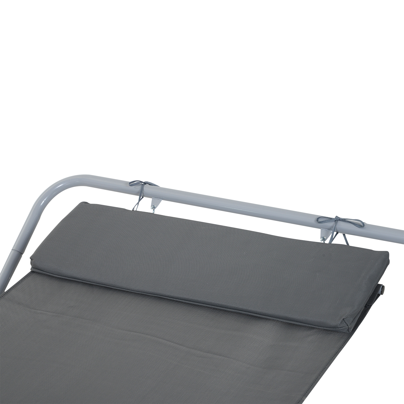 - Modern design, made of weather-proof high quality texteline fabric €¢Steel frame is constructed to withstand inclement elements €¢Comes with pillow, let you rest your head