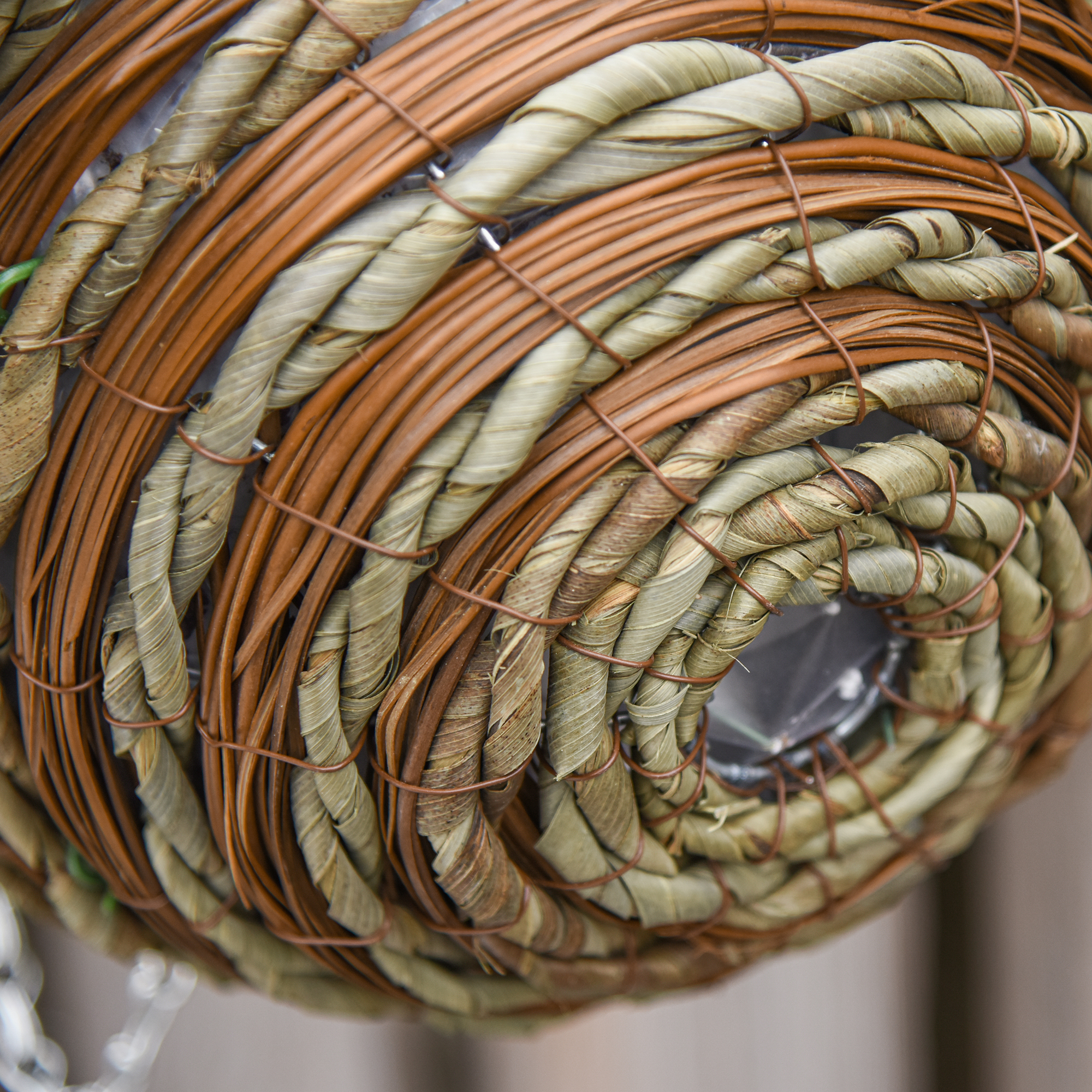 - Comes with cement-filled wicker basket. Basket with metal chain and hook to hang easily