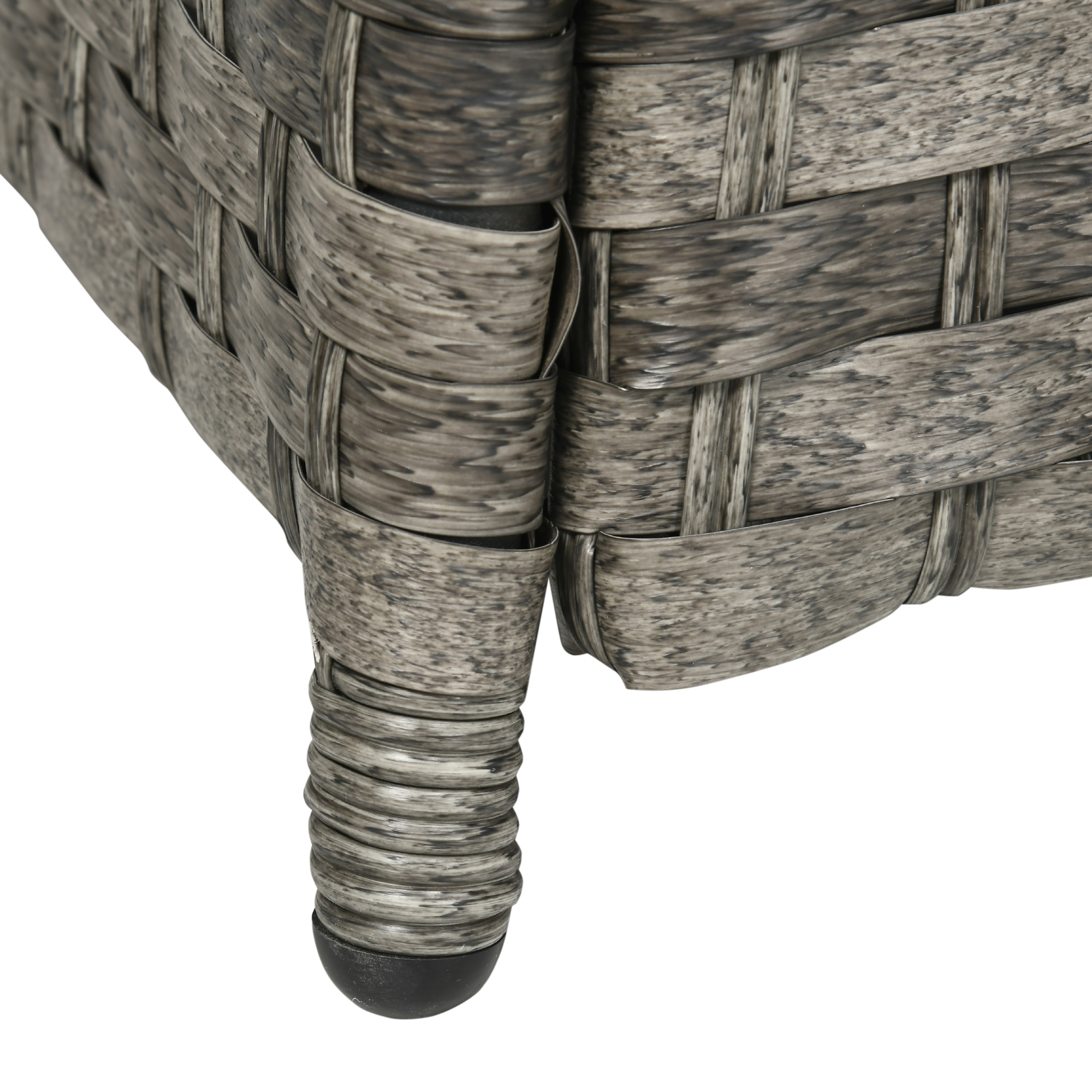 Relaxing evening times need never be cold again - do it in one with this Outsunny rattan set, with fire pit table. The two corner loveseats, standard loveseat, three footstools and matching fire pit table mean there's room for your favourites to gather round, with the table giving you somewhere to eat and drink from. In the middle of the table, there's a fire pit: provides up to 50,000 BTU power - plenty of heat for the colder climes. There's a wind guard for the fire, so you can keep peace of mind, at all times.