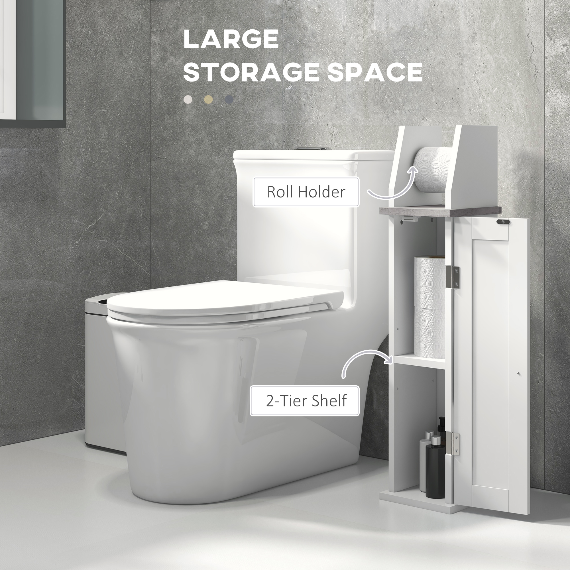 A essential for every bathroom, with added handiness. This kleankin bathroom cabinet combines a top toilet roll holder and bottom storage cabinet. Made from MDF, it is a durable piece suitable for everyday use, with a water-resistant paint coating for gentle protection. Inside the cupboard is an adjustable shelf to fit in differently-sized items. A simple and effective home storage piece.