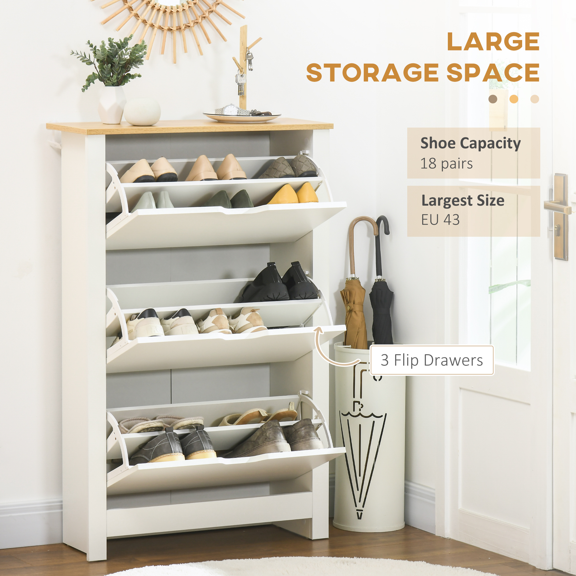 - Storage capacity: 18 pairs (Max Shoes Size: UK 8)