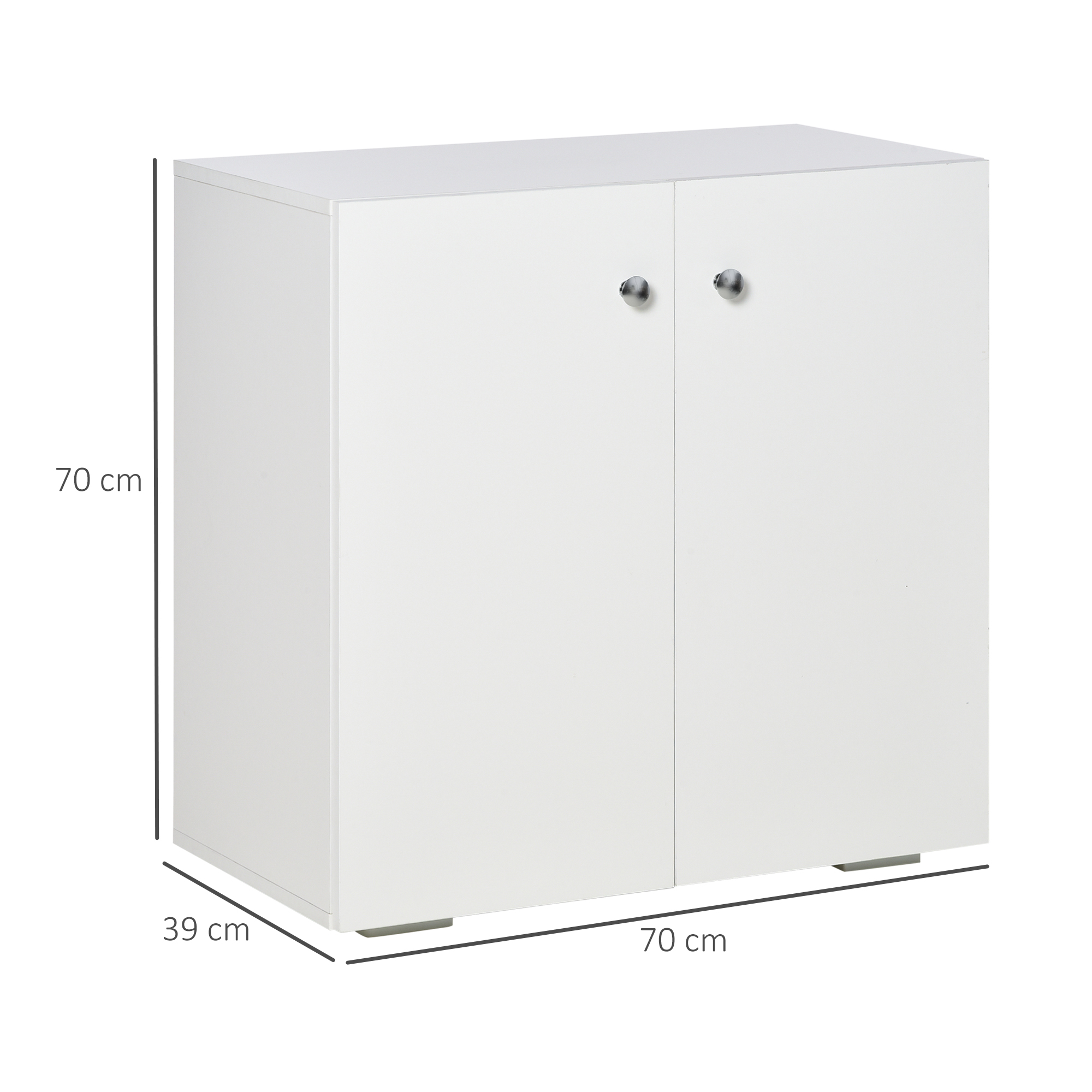 Keep your home organised with this stylish freestanding cabinet from HOMCOM. It can be used in any room, the two shelves will help it stay tidy and clutter-free. Use the spacious table top for displaying your favourite pieces, giving it a lovely decorative touch. Its all-white design can match any décor, whilst the particle board makes it easy to clean - maintaining its fresh appearance. A modern cabinet that's useful and fashionable; a great addition to your home.